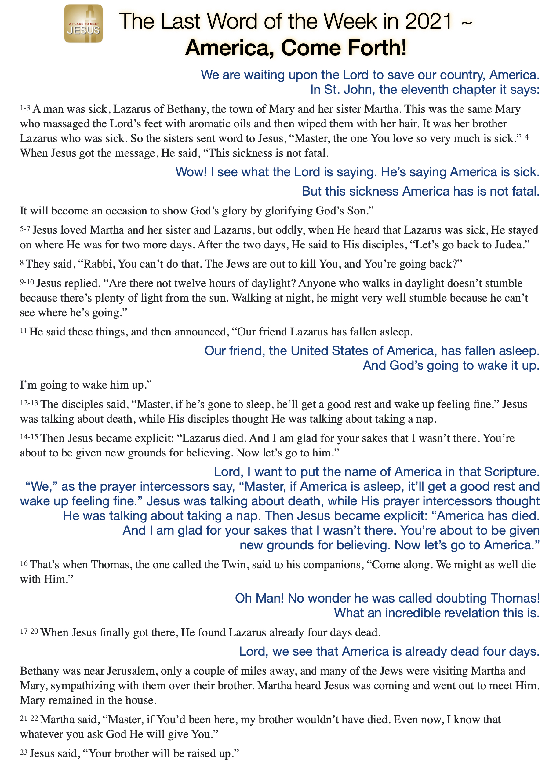 The Last Word of the Week in 2021~America, Come Forth!